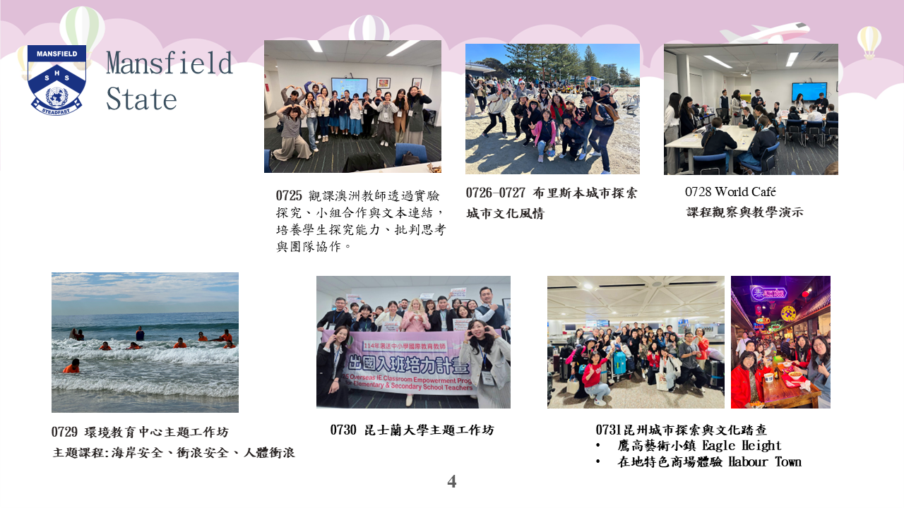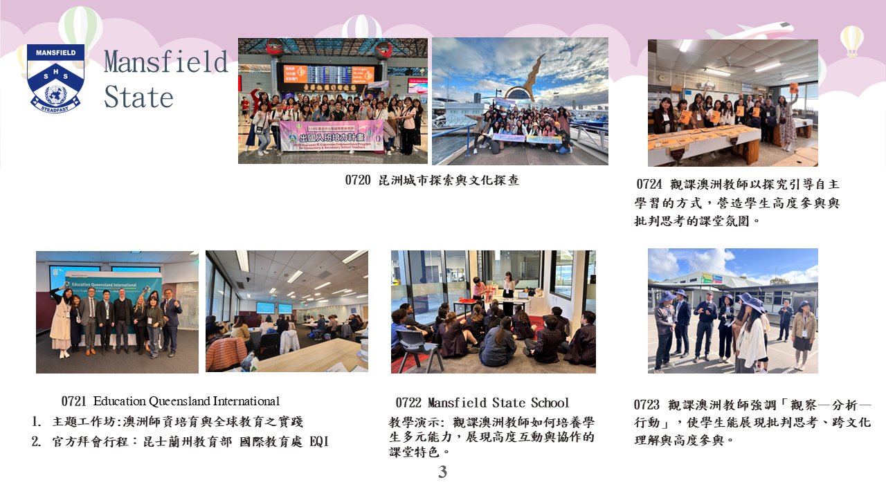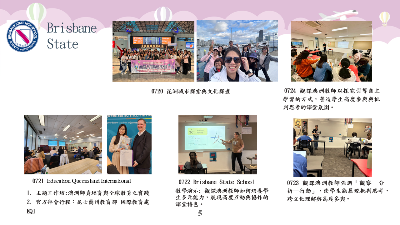 昆士蘭州教育部國際教育處(EQI)參訪 從國際教育到全球素養及SDGs聯合國永續發展目標 由本計畫的主持人國立成功大學鄒文莉主任授課。 講師: 國立成功大學 鄒文莉教授 |