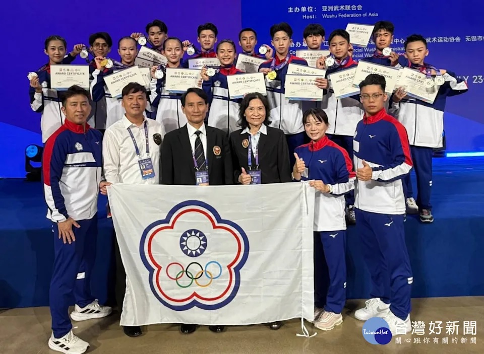 亞洲青少年武術錦標賽,由中華民國國武術總會領軍與中華隊裁判員以及國家隊教練選手團隊們,榮獲佳績光榮時刻站上頒獎台合影