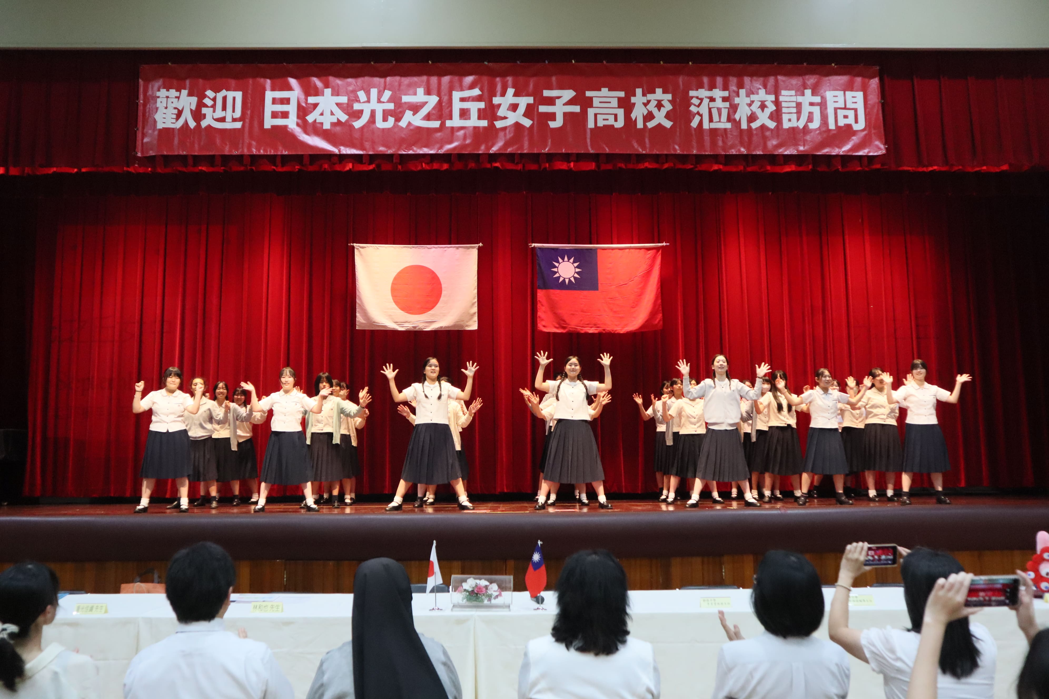 本次訪臺行程中,拜訪靜修是最大亮點。歡迎會由靜修蔡英華校長致詞揭開序幕,蔡校長特別感謝光之丘女高對一年期交換生的照顧,也期待明年4月日本交換生的到來。隨後兩校學生展現多元才藝,掀起全場高潮。靜修學生以熱舞和武術展現自信與活力;光之丘學生則帶來三首動感流行歌曲與自編舞曲串燒,洋溢青春創意。會後,靜修日文科學生更親自陪同導覽,以流利日文交流互動,讓日本學伴在短短時光裡深入體驗校園氛圍。