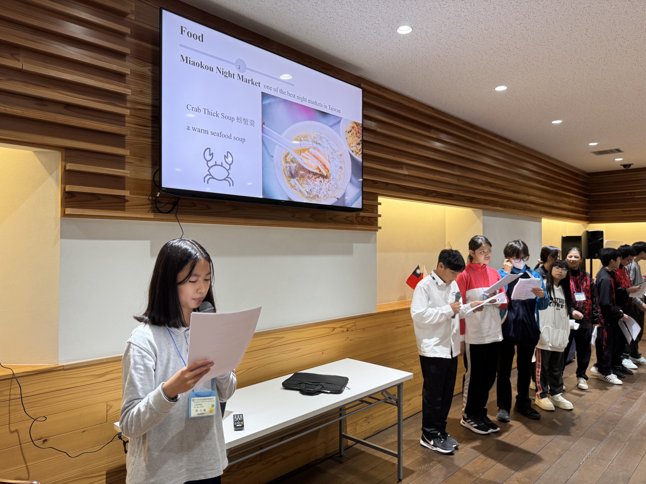 基隆市16位師生赴日國際交流圓滿成功 收穫滿行囊,圖為二信國中部周子琳同學進行簡報/信義國中提供