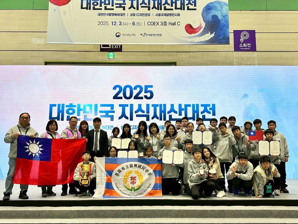 (墨新聞/江育銓報導)基隆市銘傳國中於 2025 首爾國際發明展中表現突出,獲得大會首獎Grand Prize最高榮譽獎,另外再取得 5 銀 1 銅的成績,成果斐然。