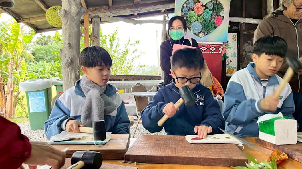 在吉籟獵人學校學習搥然,利用天然植物為染料,向大地學習