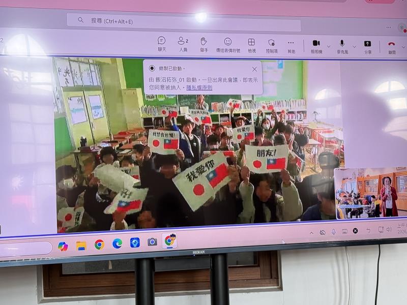(中央社)臺南市立人國小今日與日本靜岡縣藤枝小學校進行一場別具意義的國際交流活動,透過英語視訊,讓藝術、戲劇與運動成為跨越語言的共同語彙。活動中,立人國小五年級美術班學生以校本自創繪本與音樂劇《汪汪出發》為主軸,結合藝術創作與表演,向日本師生展現臺南孩子豐沛的創意能量與自信表達。