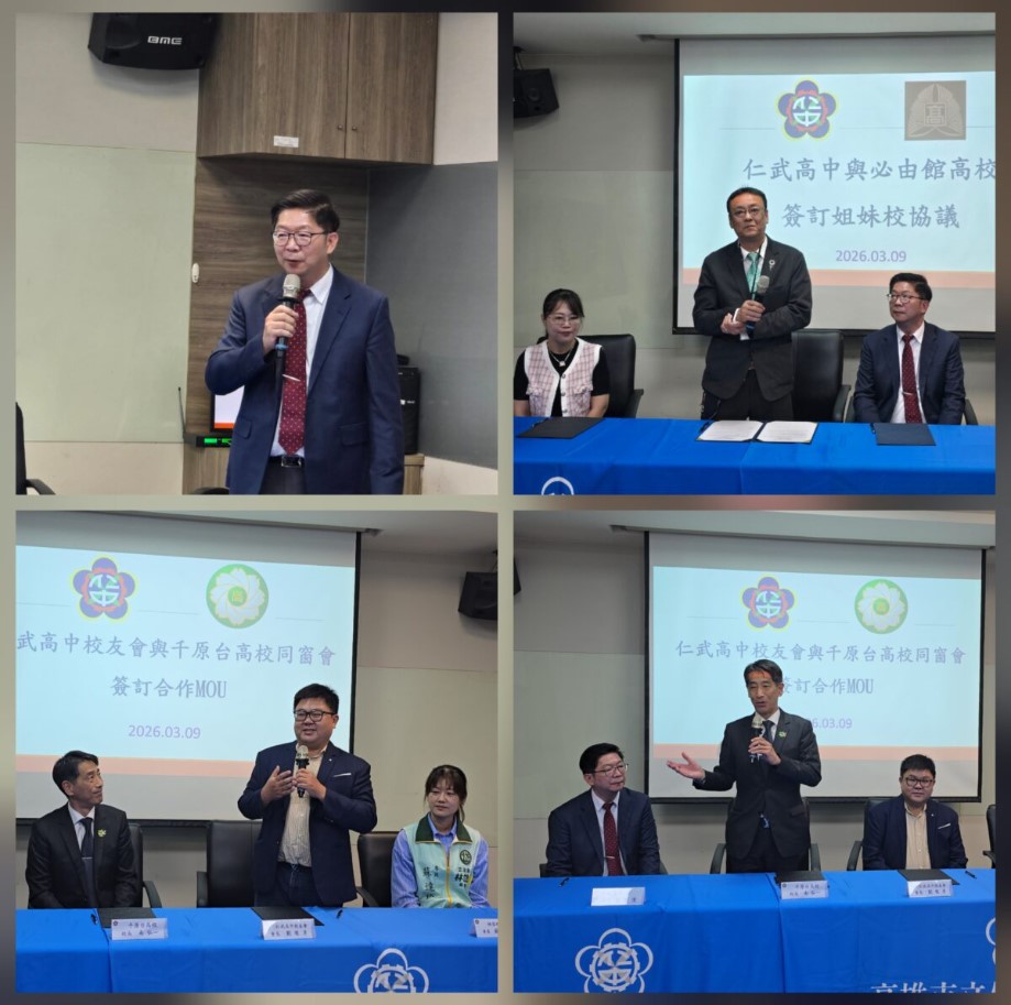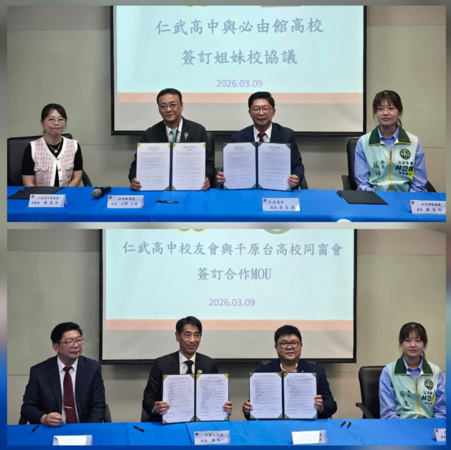 (蕃新聞/王苡蘋報導) 高雄市立仁武高中積極拓展國際教育版圖,今(9)日完成三項重要跨國合作備忘錄(MOU),包括與日本熊本市立必由館高校締結姊妹校、與日本熊本市立千原台高校校友會簽署交流合作備忘錄,以及與熊本學園建立升學聯盟,為學生開拓日本升學新管道,也為台日教育合作寫下新頁。