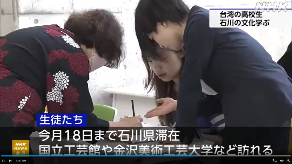 (NHK) 日本の美術や伝統工芸を知るために石川県を訪れている台湾の高校生が白山市で「加賀友禅」の制作工程などを学びました。