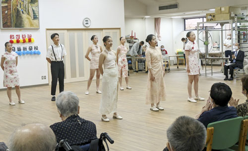 (伊勢新聞)【津】津まつり(10―12日)の「安濃津よさこい」参加のため台湾から来津した私立華岡芸術学校(台北市)の生徒34人が10日、津市殿村の介護老人保健施設トマトを訪れ、歌や踊りを披露した。