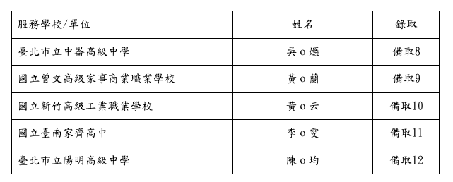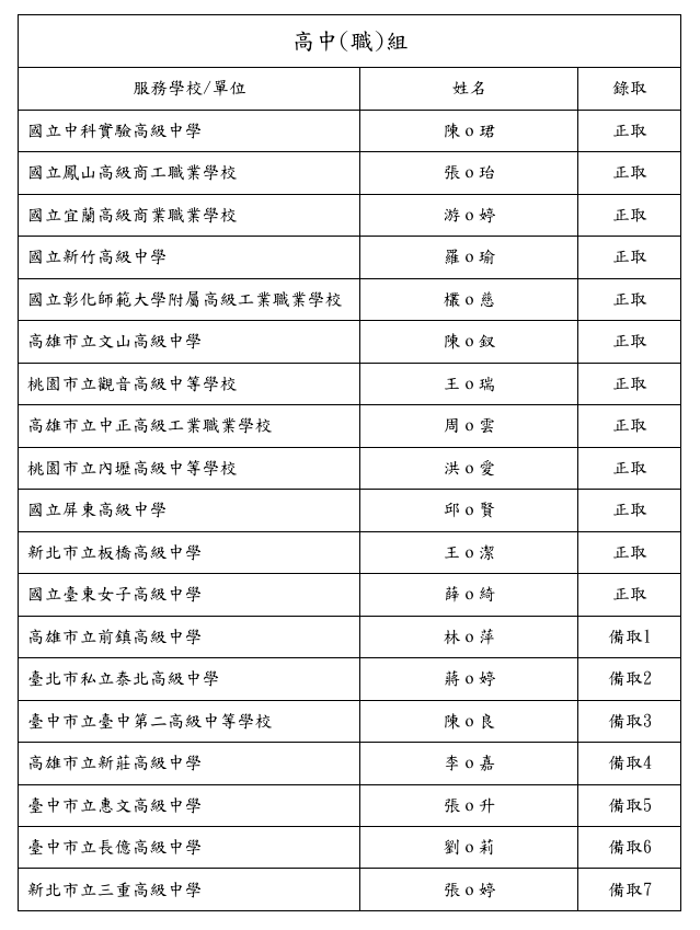 四、正取及備取名單 :