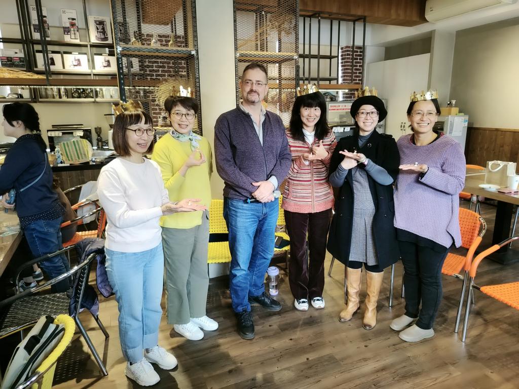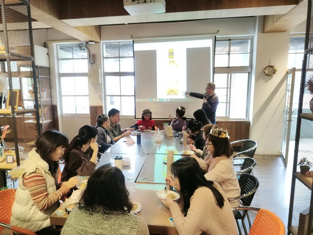 新竹市國際教育中心於聖誕節前特別邀請到臺北歐洲學校Gina老師以及她的法國籍先生Eric來辦理主題國家研習,這次兩位老師來分享的是法國人聖誕節傳統的糕點-國王派。