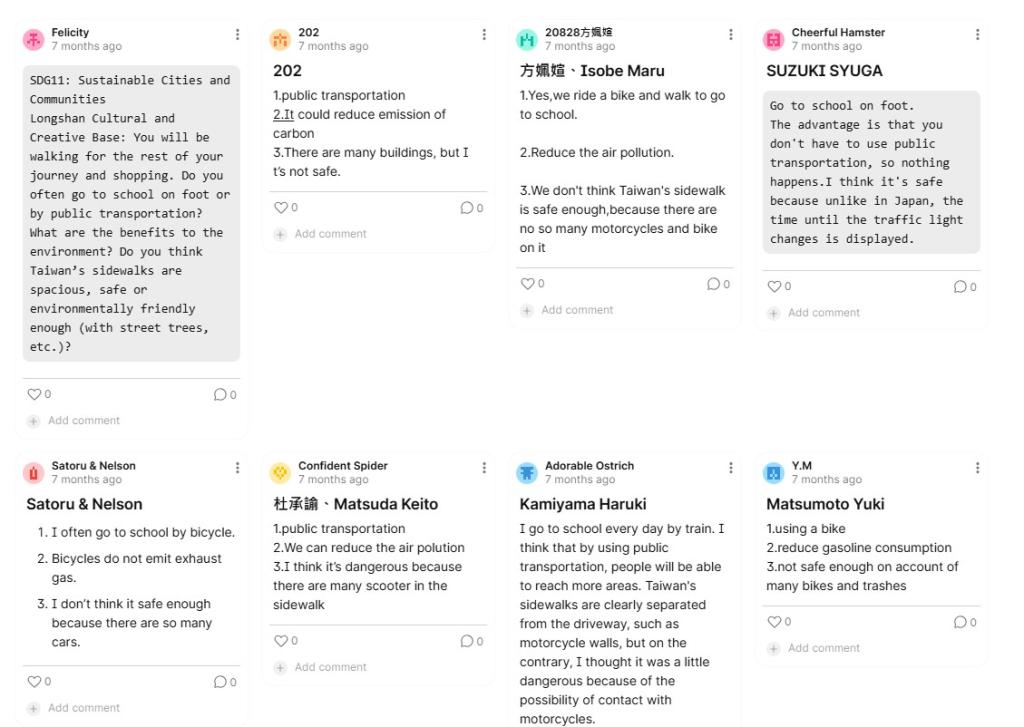 日方學生與本校學生於Padlet回答SDGs任務: https://padlet.com/ClaraYR/breakout-room/xPdL4gerYpNlqpwK-PW6VbOKrdw9qbY19 https://padlet.com/ClaraYR/breakout-room/PkpnqAB0nLABvD0B-PW6VbOKrdw9qbY19