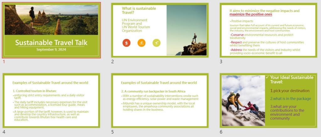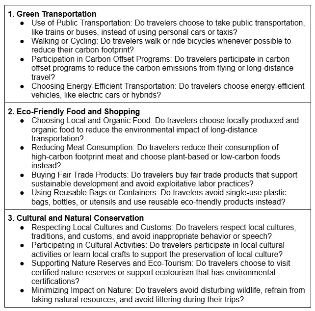 - Example: "To practice sustainable tourism, we can choose eco-friendly accommodations that use renewable energy and reduce waste."