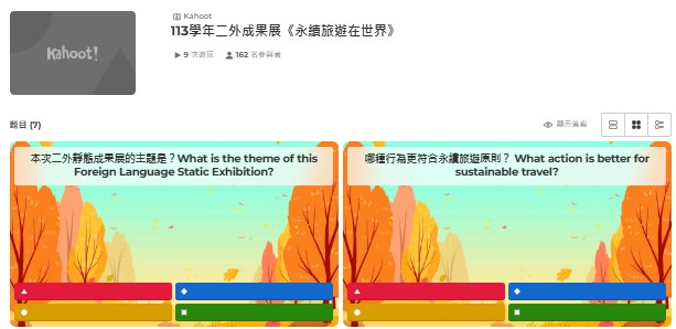 第二外語成果展設計Kahoot線上遊戲活動與連結: