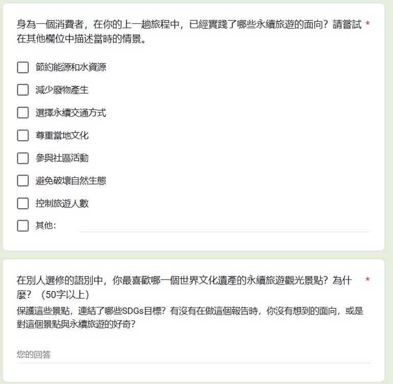 活動二、我們開了一間永續旅行社之「行程設計(一)—問卷製作與資料蒐集」