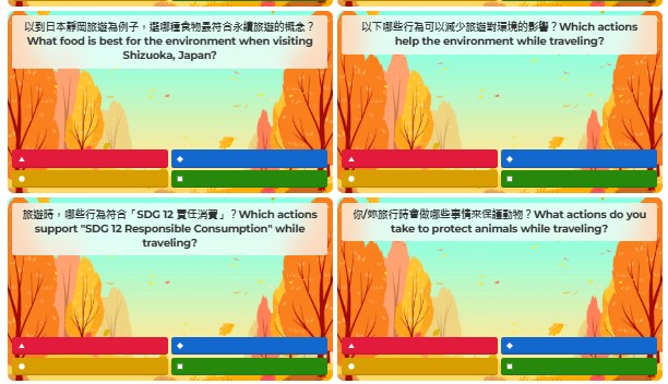 帶領日本來訪高校學生一同參展與進行Kahoot遊戲互動認識永續旅遊,營造互動氛圍