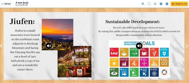 | (二)學生依教師引導,利用Book Creator製作永續旅遊規劃英語電子書 |