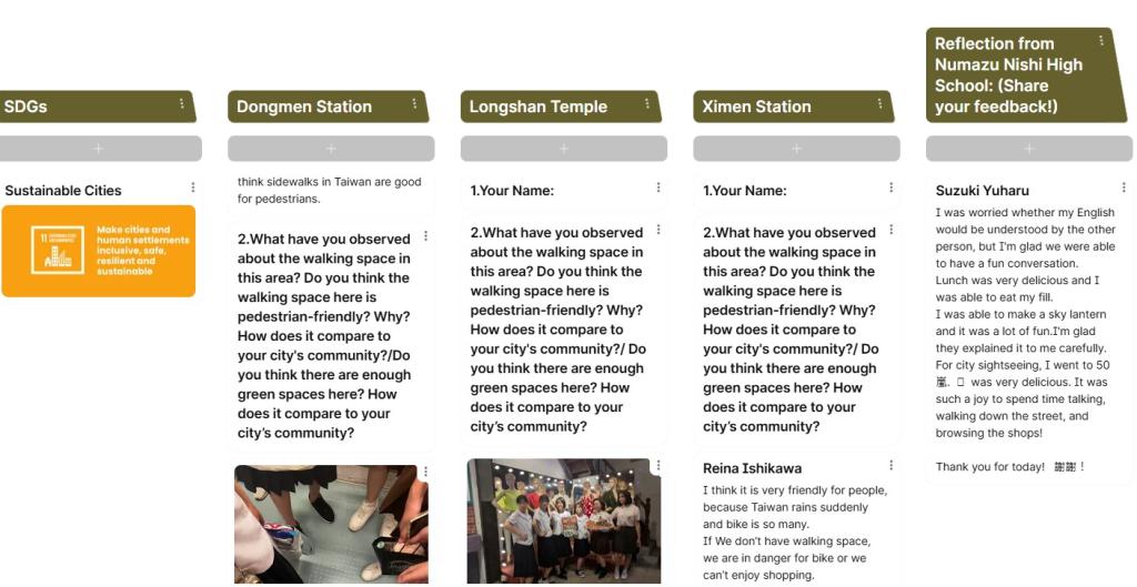 | (三)以上永續旅遊之城市探索活動,搭配以Padlet設計SDGs任務,帶日生一同共學探究永續議題 |
