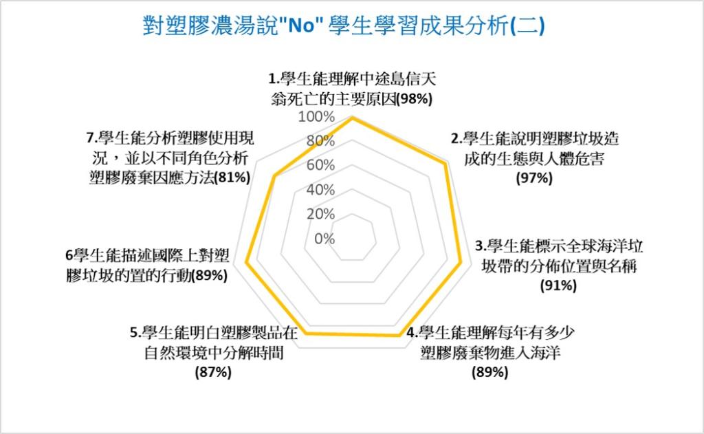 成果分析:學生能描述中途島信天翁死亡的主要原因,說明塑膠垃圾造成哪些生態的危害,描述全球塑膠垃圾污染的事實。 |