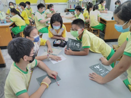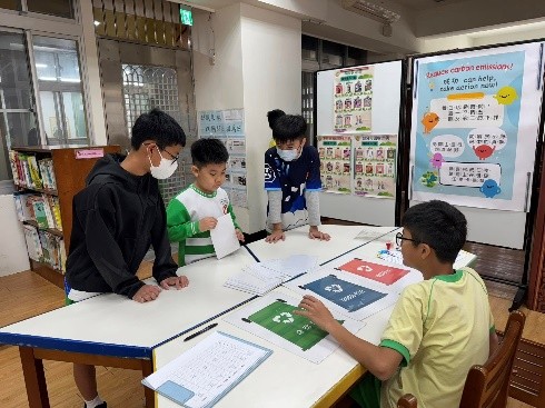 各組抽取「減碳行動提示圖卡」並討論其代表的減碳行動 |