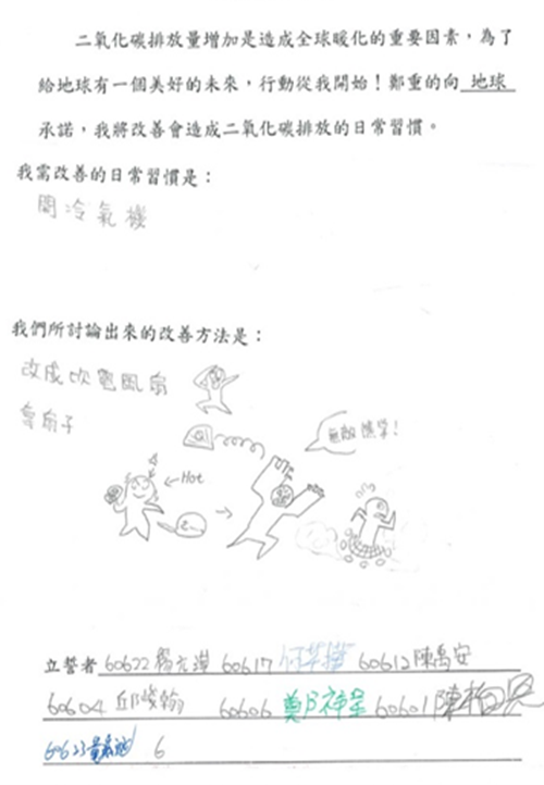分享減碳成效以及實施減碳計劃的過程中,遇到的困難、解決的方法與感受,體認到減碳的不容易與重要性。 |