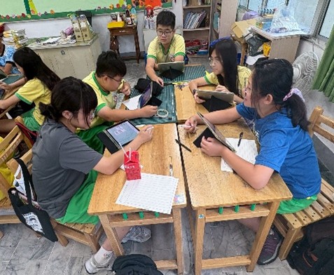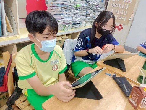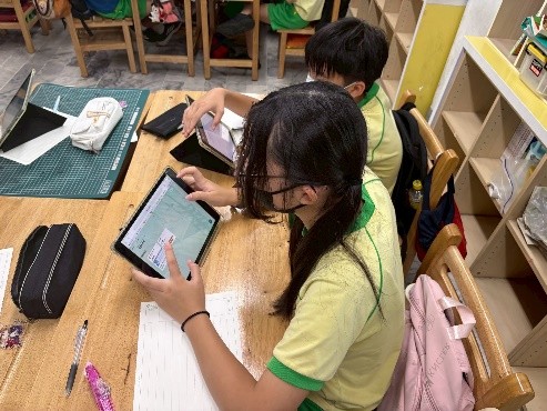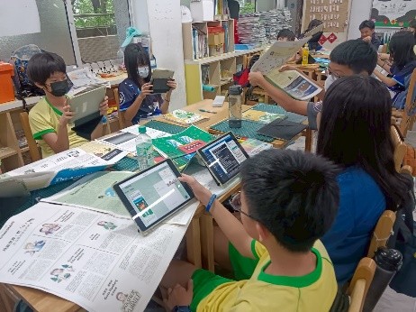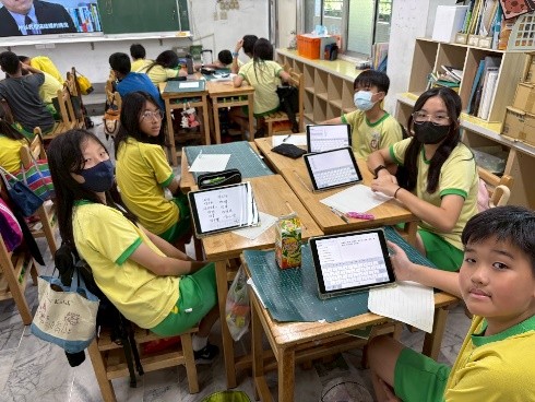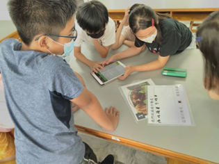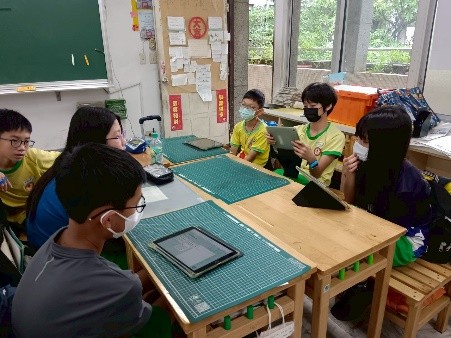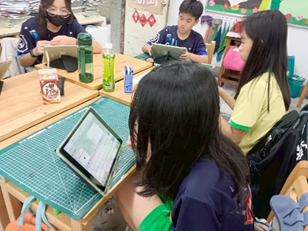 學生自學利用平板上蒐集臺灣淨零資料 |