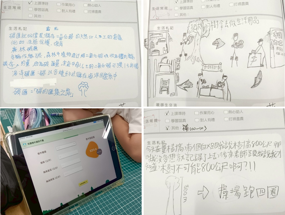 學生將本次樹碳匯活動紀錄於生活扎記 |