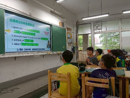 教師說明全世界包含跨國企業對淨零減碳的努力 |