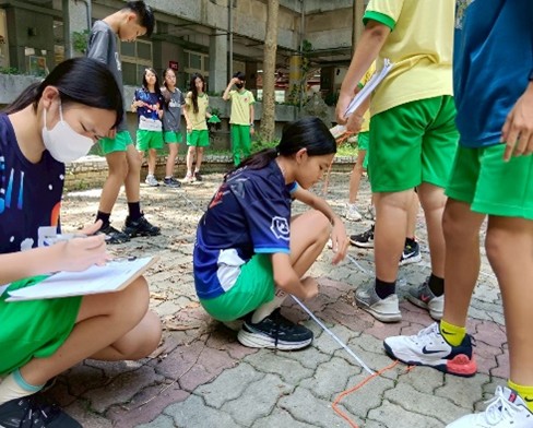 老師說明測量樹碳匯小組工作 |