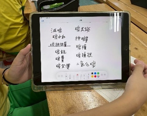 學生各自運用平板紀錄淨零關鍵字 |