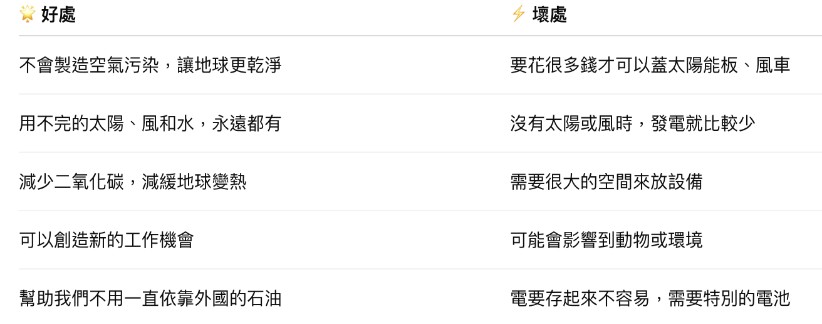 - 「你認為綠能的優缺點是什麼?原因為何?」