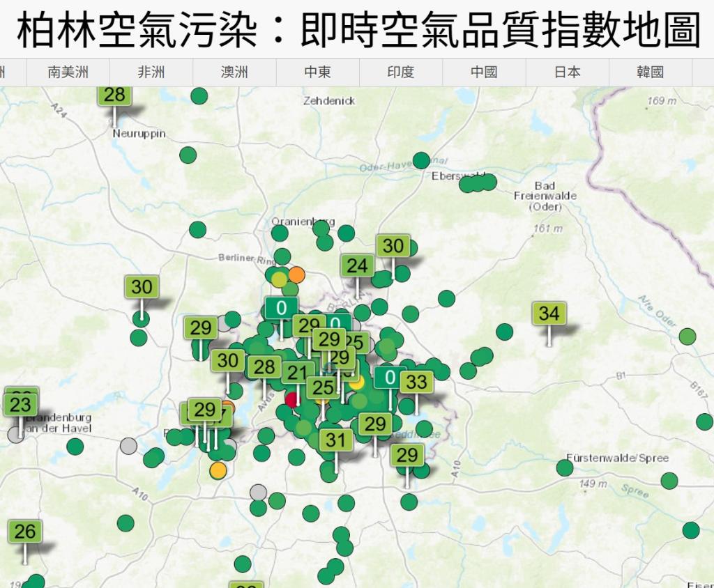 Ans.歐洲…… - )「哪些地方沒有看到這個空氣汙染的指標呢?」