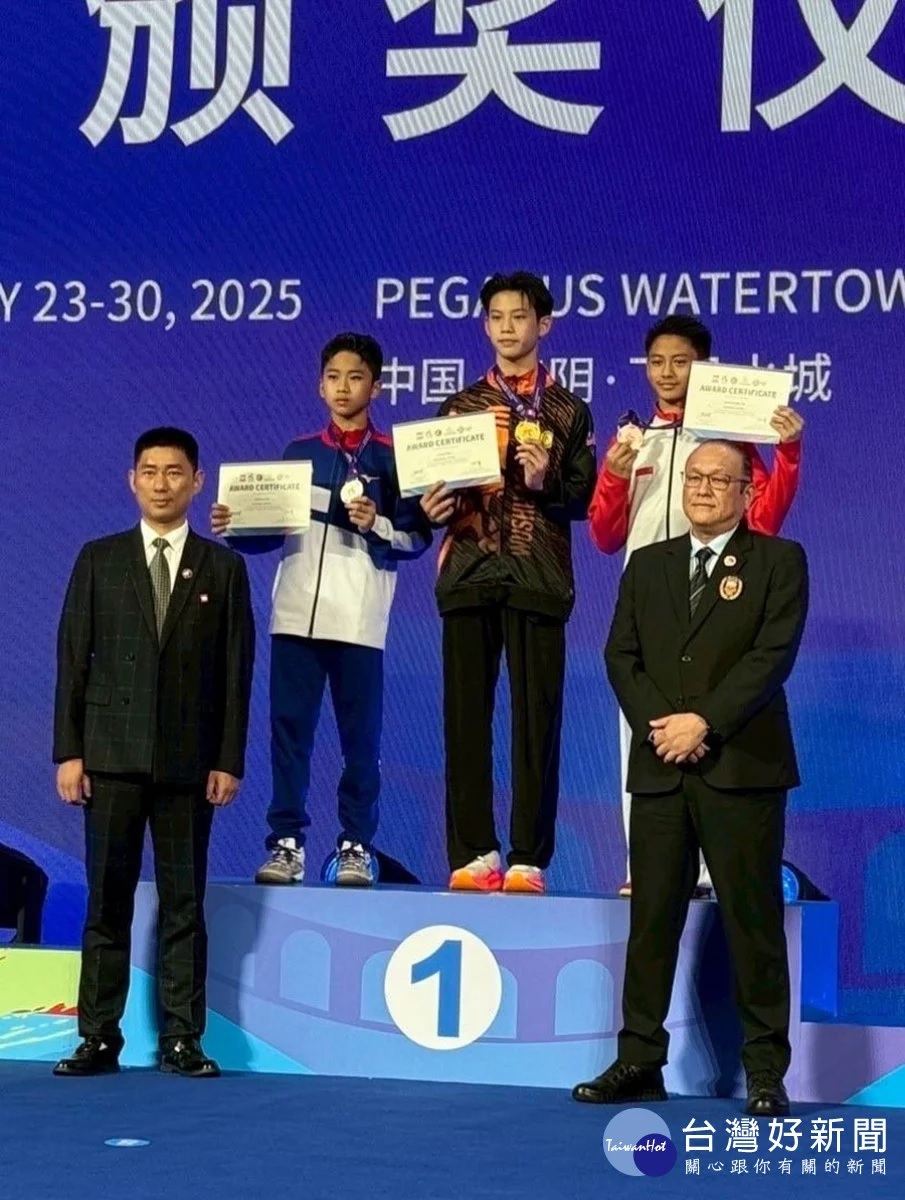 (台灣好新聞/陳華興報導)桃園市政府教育局持續鼓勵學校推展體能教育,透過帶領學子積極參與各項競賽累積經驗與實力,讓孩子們在國內與國際的舞台上大展長才。剛落幕的亞洲青少年武術錦標賽中,來自桃園市平鎮國中的彭淮祈表現亮眼,首度披上中華隊戰袍出征,在少年組男子刀術與集體拳兩個項目中勇奪雙銀。少年組男子刀術,以9.330分的高分脫穎而出,憑藉俐落動作與凌厲刀勢,展現深厚的武術底蘊與臨場實力,技驚全場,為中華隊摘下一面銀牌。而在集體拳比賽中,他與隊友展現高度默契與一致動作,氣勢磅礡、節奏明快,再添一面銀牌,展現絕佳的團隊合作與舞台表現力。