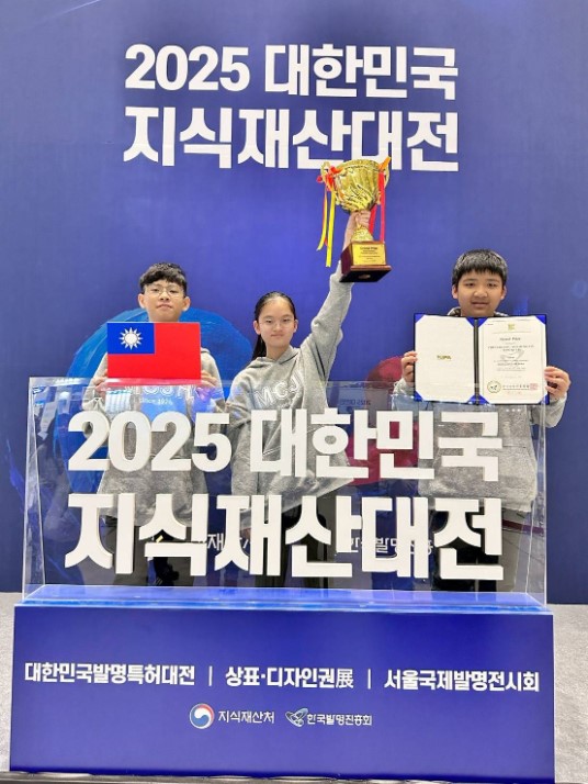 (墨新聞/江育銓報導)基隆市銘傳國中於 2025 首爾國際發明展中表現突出,獲得大會首獎Grand Prize最高榮譽獎,另外再取得 5 銀 1 銅的成績,成果斐然。