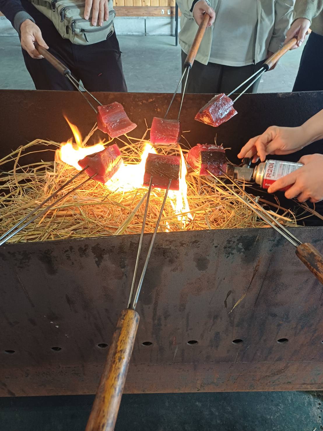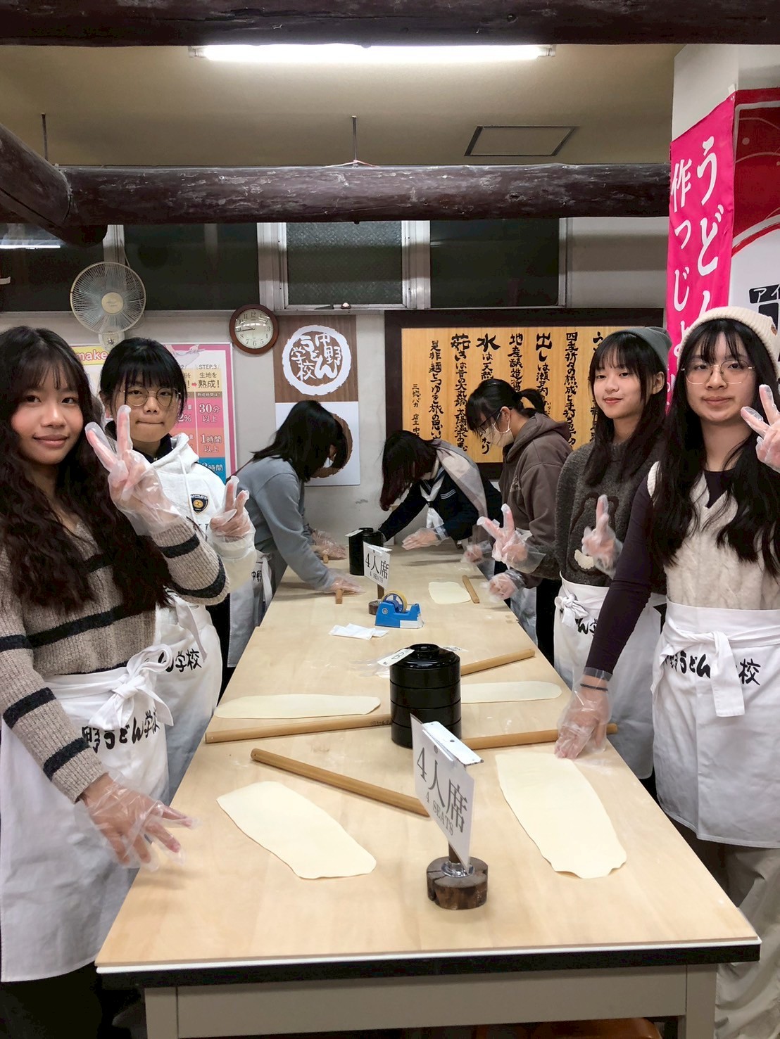 永續城鄉議題的探索由體驗以讚歧烏龍麵著名的香川縣開始, 同學們親手調製麵粉與鹽巴的比例, 揉合成麵糰, 擀成麵條成品作為午餐主食, 倍感有味珍貴。此外文化景點餐訪首站是登訪金刀比羅宮, 經由1368石階的考驗, 同學揮汗見識到本社的肅穆建築群, 以及奧社的高度視野。另外, 同學們造訪了德島博物館體驗當地古早遊戲”丟扇興”,登上小艇遊繞德島海港,見證經濟發展與城市水域維護的努力成果。在高知縣手持魚叉讓生鮮鰹魚經由稻草灼燒,簡單鹽巴蔥花灑於其上即成一道在地當令蛋白質美食。