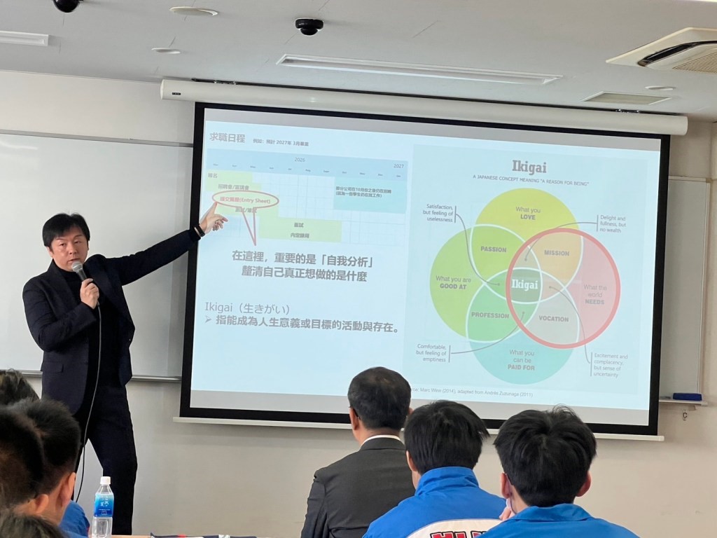 在關西大學台灣事務所的促成下,花中師生首度走進這所百年名校。由國際部古川智樹教授主持的「創新思維工作坊」,以「Ikigai(生き甲斐)」為核心,引導學生繪製思維地圖,思考自身熱愛、擅長、世界需求與報酬之間的交集,探索生命的使命感。學生們隨後參訪櫻花盛開的千里山校園,並體驗著名的學生食堂。此行更有賴行政團隊精準對接,完成繁瑣的跨國交通申請,為師生省下可觀的交通時間。