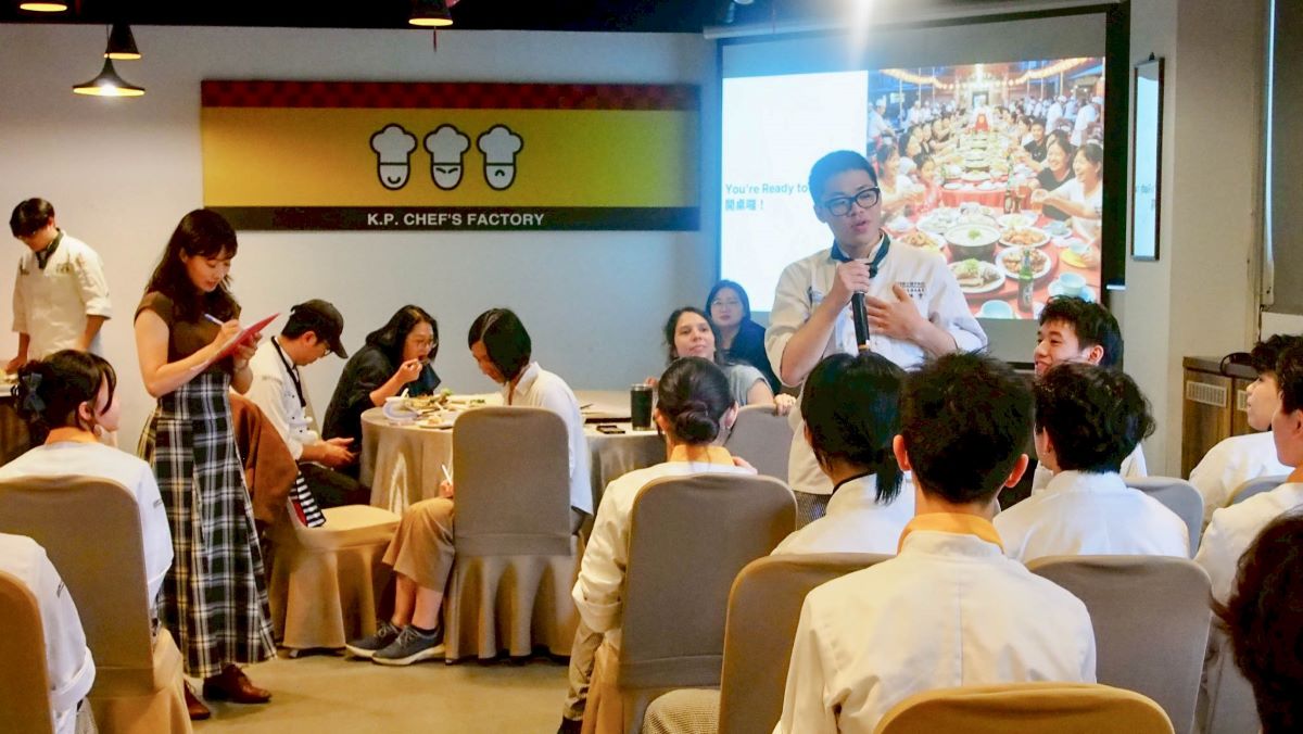 本次課程源於開平餐飲國際部獨特的「AE情境英語教學(Applied English)」,導入「學科內容與語言整合學習(CLIL)」的核心理念,打破傳統教室框架,將學生置於真實餐飲情境中,讓英文自然融入專業訓練,以此降低語言學習的焦慮。在節奏緊湊的辦桌實作中,超過九成學生能理解並執行英文專業指令。學生Hsimi興奮表示:「這堂課不僅讓我學到專業技巧,更讓我勇敢開口!」多數學生也在反覆演練中突破表達障礙,自信顯著提升,成功將英文從「考科」轉化為「解決問題的溝通工具」。