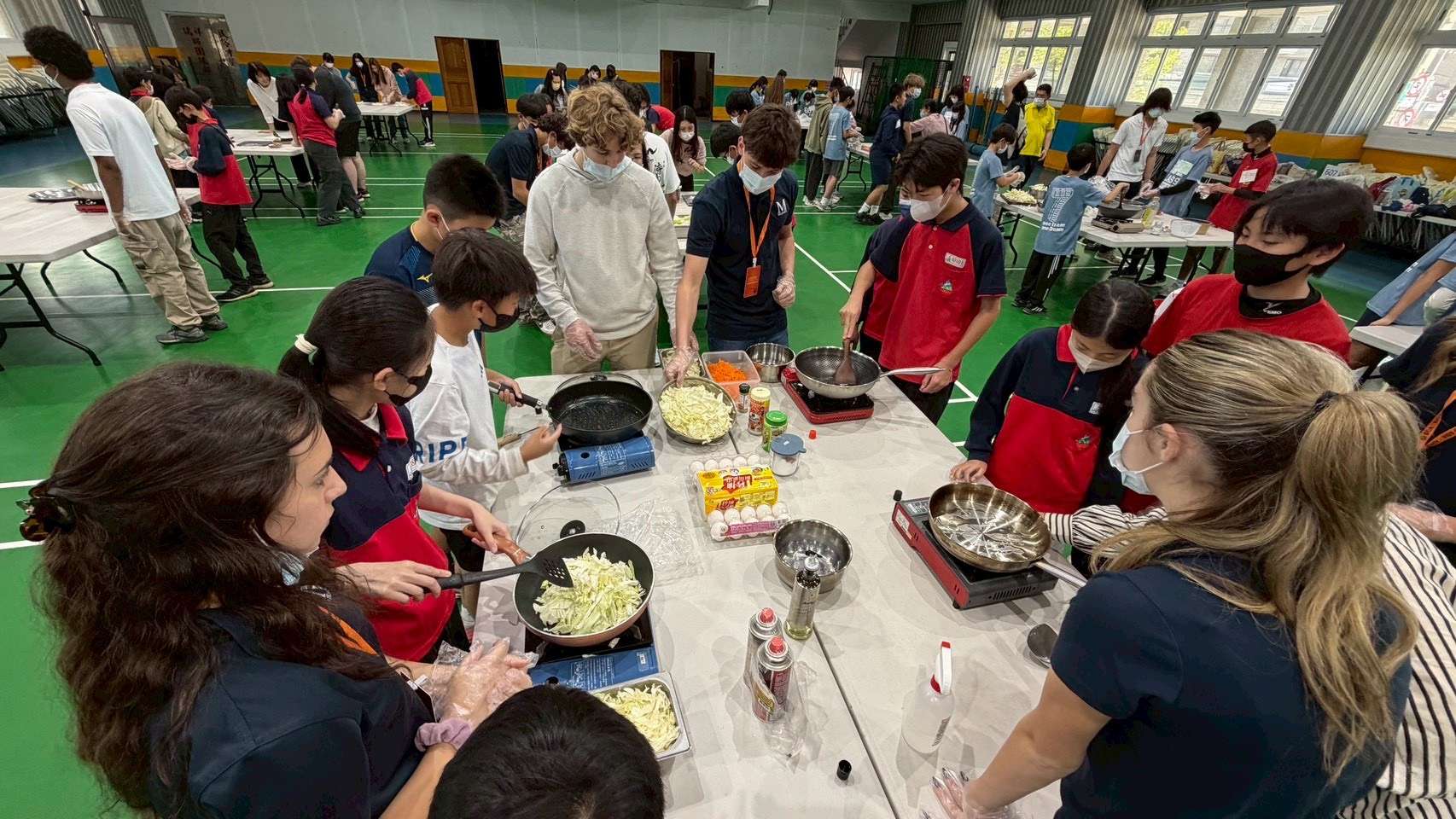 交流活動的高潮是結合食農教育的「潤餅午餐交流」。美國學生分組分別深入各桌與大園國小學生一同體驗台灣傳統美食「潤餅」的製作過程 。校方特別準備了豐富的在地食材,包含高麗菜、豆芽菜、紅燒肉、玉米、豆干、香菜等,並細心地介紹潤餅起源於古代「春盤」的文化意涵。在「折皮、處理、烹調、組裝」四個功能區中,台美學生攜手合作,學習如何從備料到餐桌,親手製作屬於自己的潤餅 。這不僅是一場味覺的饗宴,更是食農教育與文化推廣的完美結合。