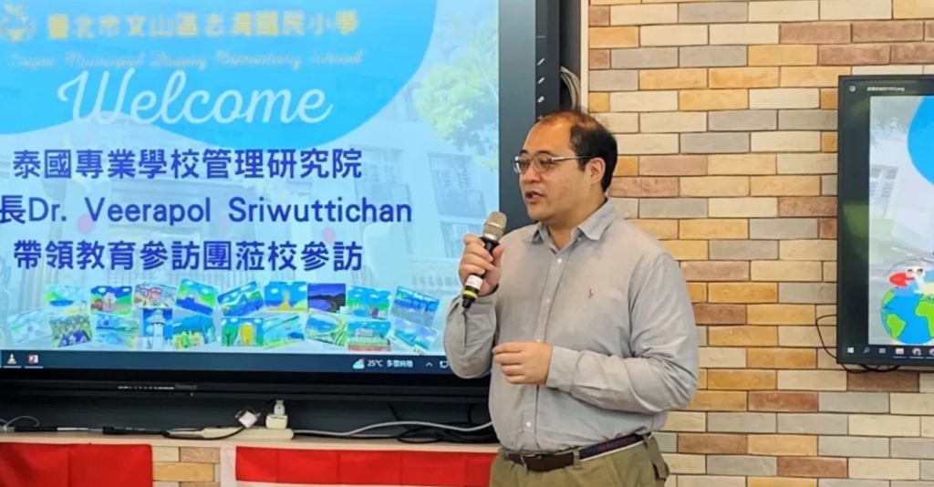 泰國專業學校管理研究院所長 Dr. Veerapol Sriwuttichan 帶領12所泰國小學及幼兒園校長、1教師等30人教育參訪團在5月初到志清國小觀摩交流,由校長張瑞庭介紹學校的歷史發展、學校特色、發展重點與未來願景,清楚地擘劃出志清孩子的未來圖像。教務處王信傑主任分享學校推動智慧教育與行動學習的理念、實際做法與成效。輔導室劉智豪主任說明學校輔導機制、特教課程、輔特合作,以及學校如何與心理師、語言治療師、職能治療師與醫師等外部醫療資源的合作模式。