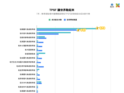 【排行榜活動】7月份教育部駐境外機構轄區學校TPSF註冊與媒合成功次數 2025-07-24 -