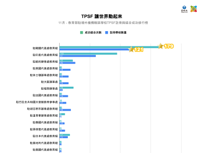 【排行榜活動】11月份教育部駐境外機構轄區學校TPSF註冊與媒合成功次數 2025-11-20 -