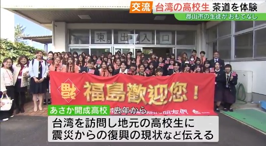 郡山市の県立あさか開成高校で歓迎を受けたのは、台湾の高校生およそ30人です。あさか開成高校は、去年から台湾の高校を訪れ、復興の状況を伝えるなど交流を続けていて、今回、台湾の生徒たちが教育旅行の一環として、学校を訪問しました。