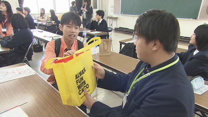 台湾の高校生たちは、あさか開成の生徒たちに現地のお菓子をプレゼントするなど、中国語と英語を交えながら交流を深めました。