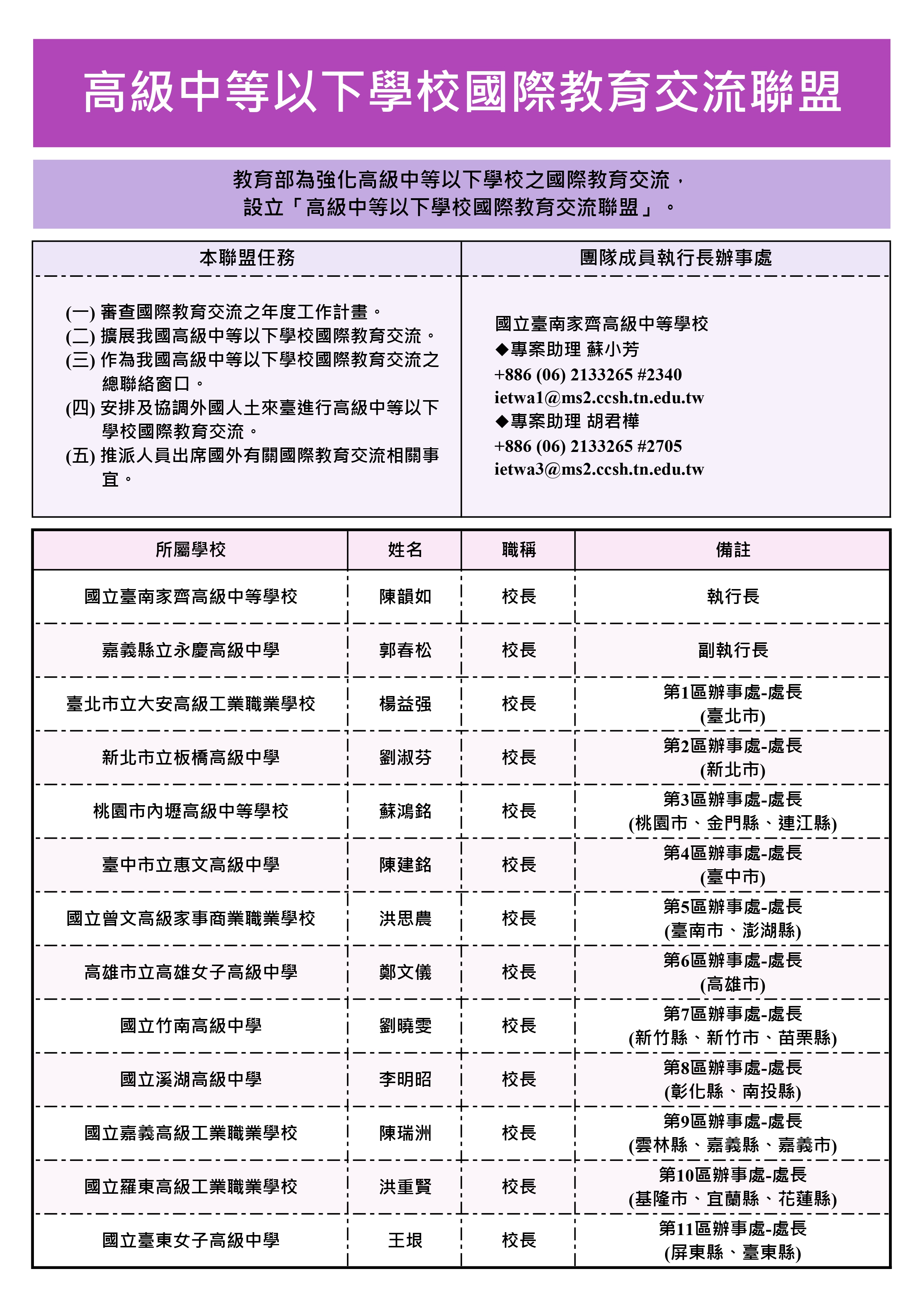 高級中等以下學校國際教育交流聯盟組織架構