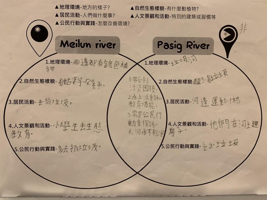 | 2. 國際比較與跨文化理解 *能比較日本與本地的家鄉溪流有哪些生態、產業、人文故事的異同,及所共同面臨的挑戰。 |