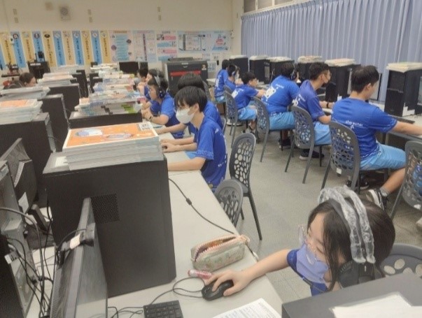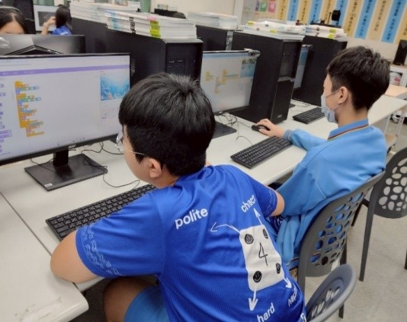 學生進行Egame程式設計與減少海廢的方式說明 |