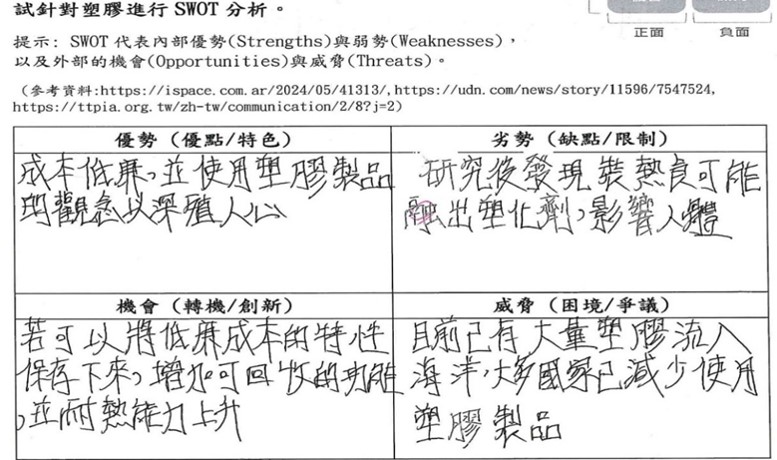 單元三學習單主題:對塑膠濃湯說No之塑膠SWOT分析 |