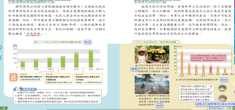 三、 透過閱讀社會課本主題二:臺灣走向世界《為什麼我們要關心全球環境議題》