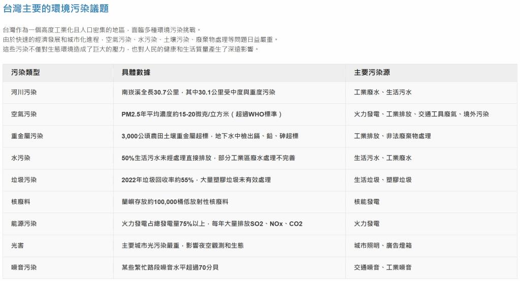 - 帶領學生利用資訊科技查詢臺灣目前主要的環境汙染問題。