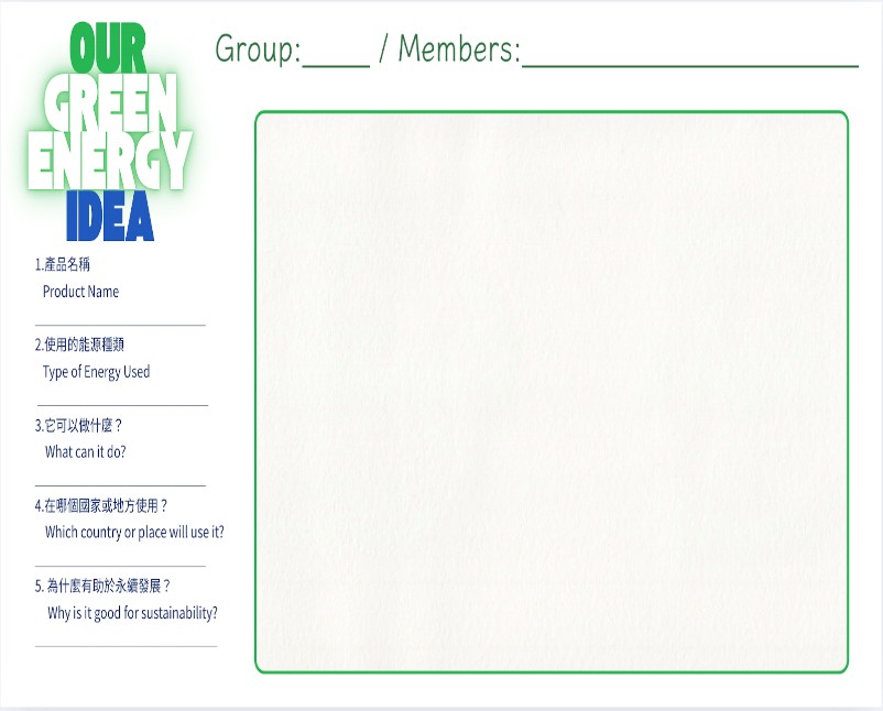 - 每組完成一張「綠能產品設計單」: